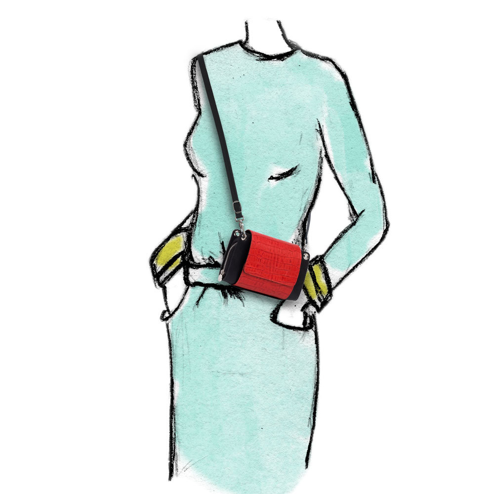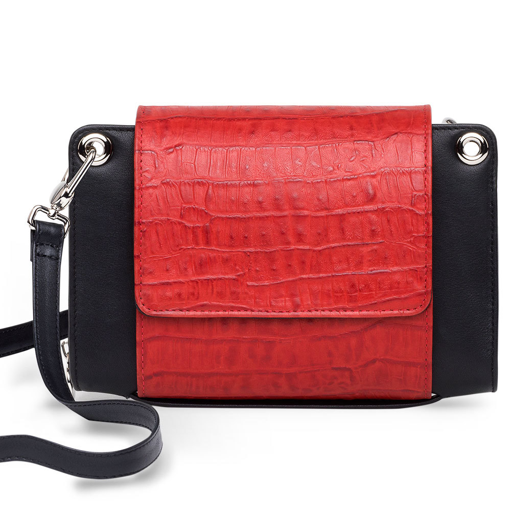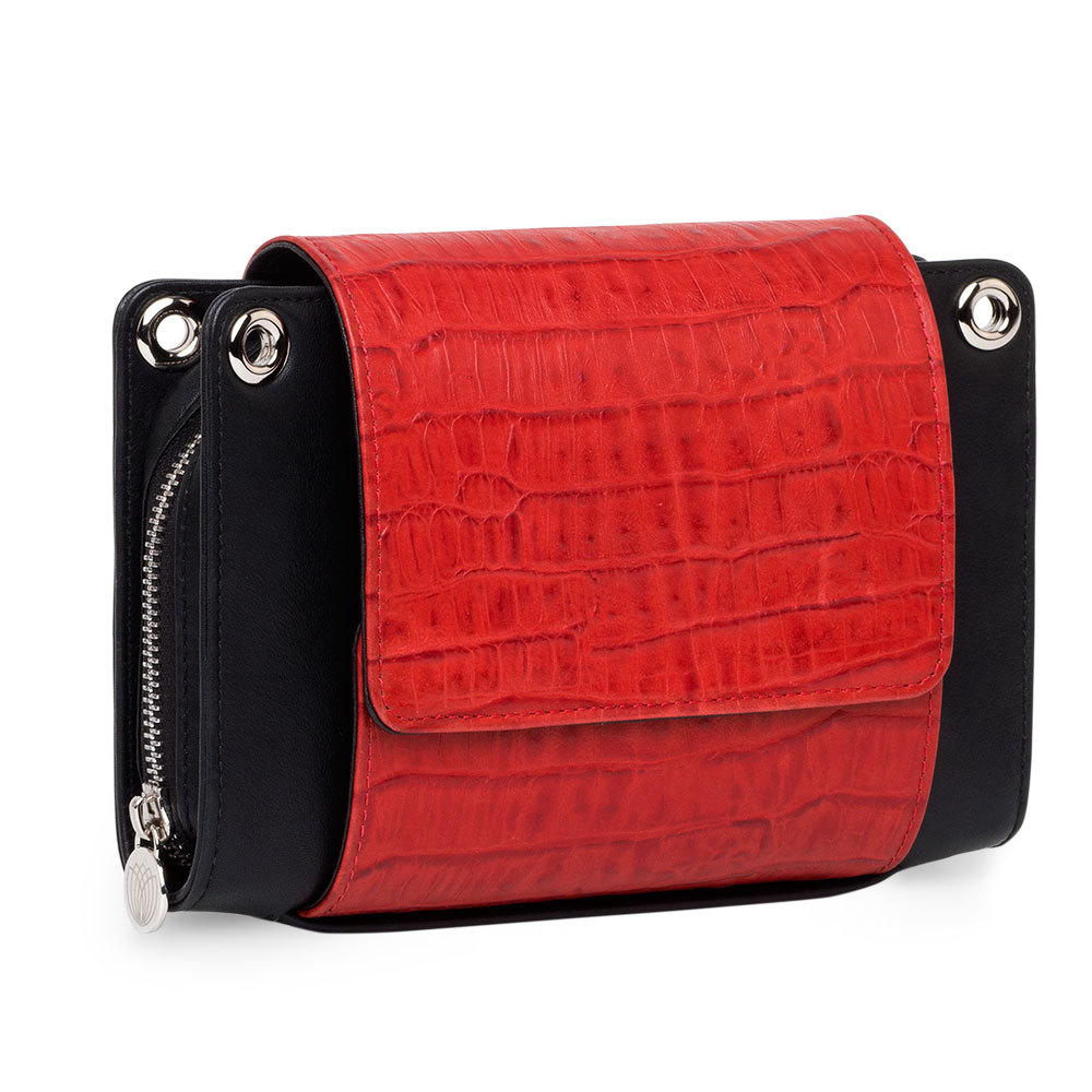 Ruby red in combination with a high quality croco textured cow leather sets exciting accents day or night. For a more subtle look, flip the sleeve over to its crinkly black leather side.