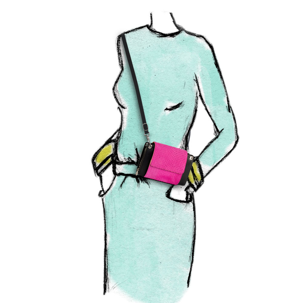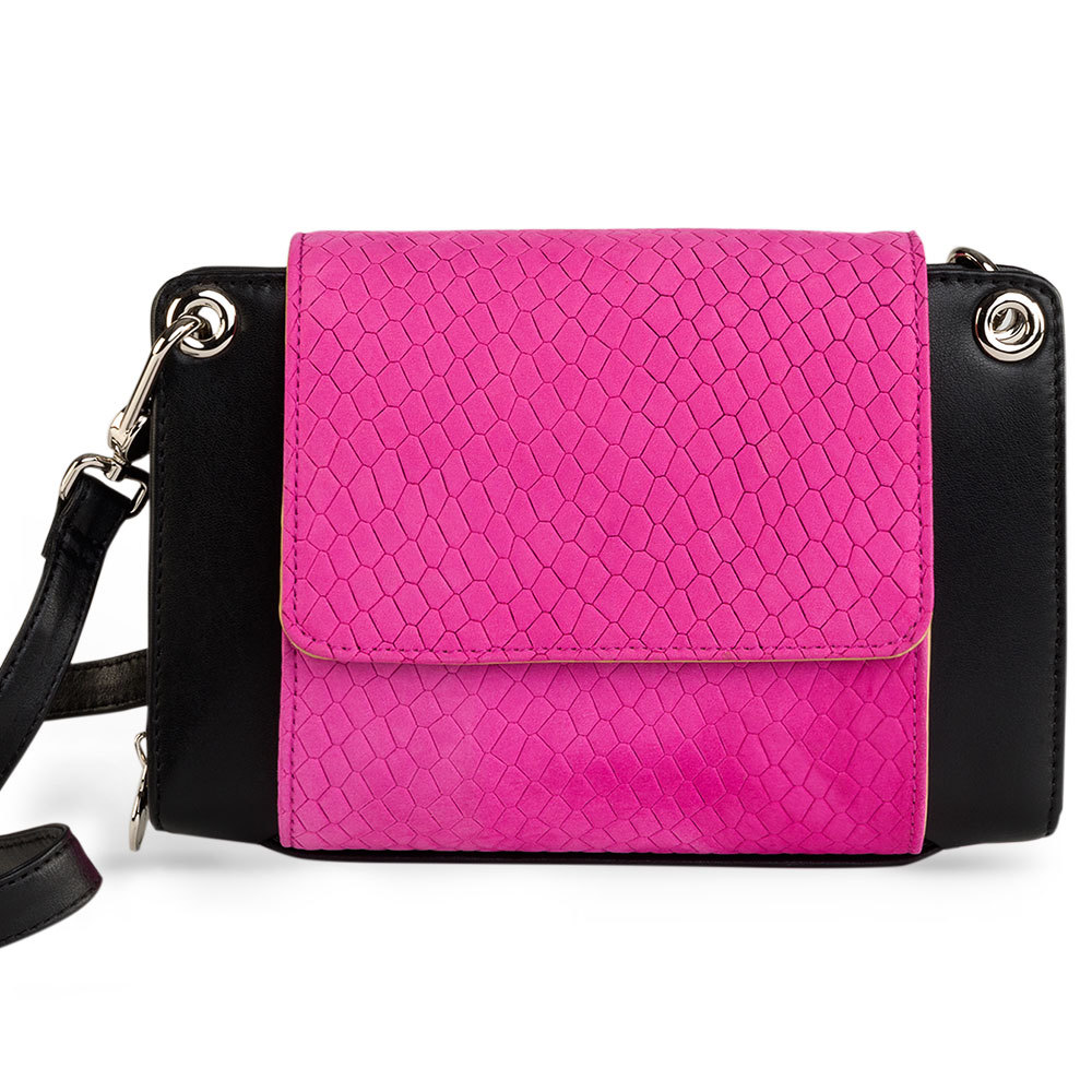 Get a scrumptiously tasty look with this sleeve made from finest suede in a bright shade of raspberry and delicately embossed honeycombs. Subtly, but no less appetizing, is the back side with soft caramel-colored leather.