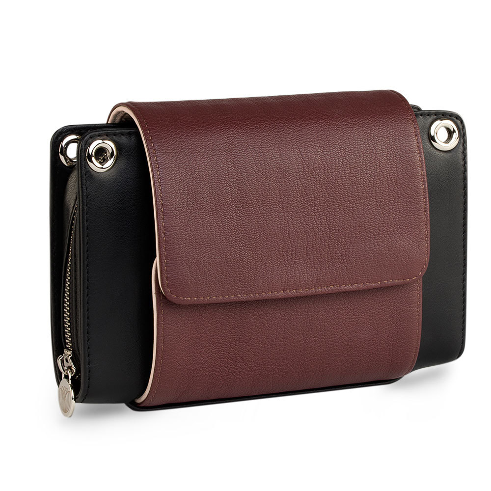 Flexible sleeves can be easily attached to the bag by pulling them through the two straps at the back- and bottom side of the bag. Both sleeve ends are then joined together at the frontside of the bag by an invisible magnetic closure.